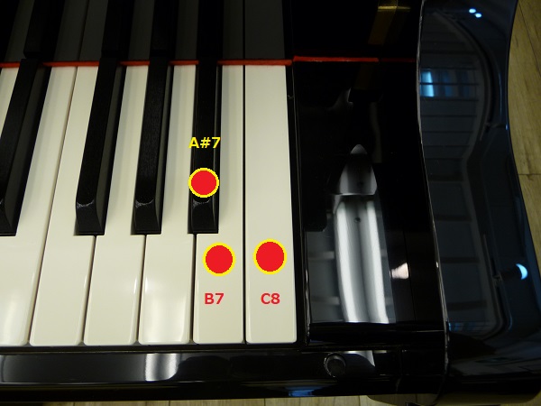 但し切り替える際、右端のA♯7、B7、C8の押すタイミングは「同時」じゃないと音色が切替わるモ