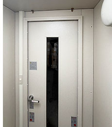 ドア : 木製防音ドア(透明ガラス窓付き)・表面:強化化粧紙仕上げ(木目調)