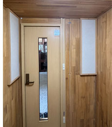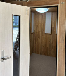 ドア : 木製防音ドア(透明ガラス窓付き)・表面:強化化粧紙仕上げ(木目調)