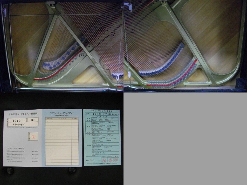 ◇ヤマハ「リニューアルピアノ」にはステッカーと整備表・保証書がついています。